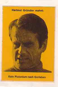 Der Lehrer Hartmut Gründler, 1971 Mitbegründer des Tübinger Bundes für Umweltschutz (BfU) und dann Gründer des Tübinger Arbeitskreises Lebensschutz , hatte das Erscheinen seiner Studie Kernenergiewerbung im Rowohlt Literaturmagazin 8 (Die Sprache des Großen Bruders) nicht mehr erleben können - einige Wochen zuvor, während des Hamburger SPD-Parteitages über die Atomenergiepolitik Mitte November 1977, hatte er anstelle eines geplanten erneuten Hungerstreiks die unumkehrbare Protestform der Selbstverbrennung gewählt, zum Entsetzen seiner Mitstreiter.